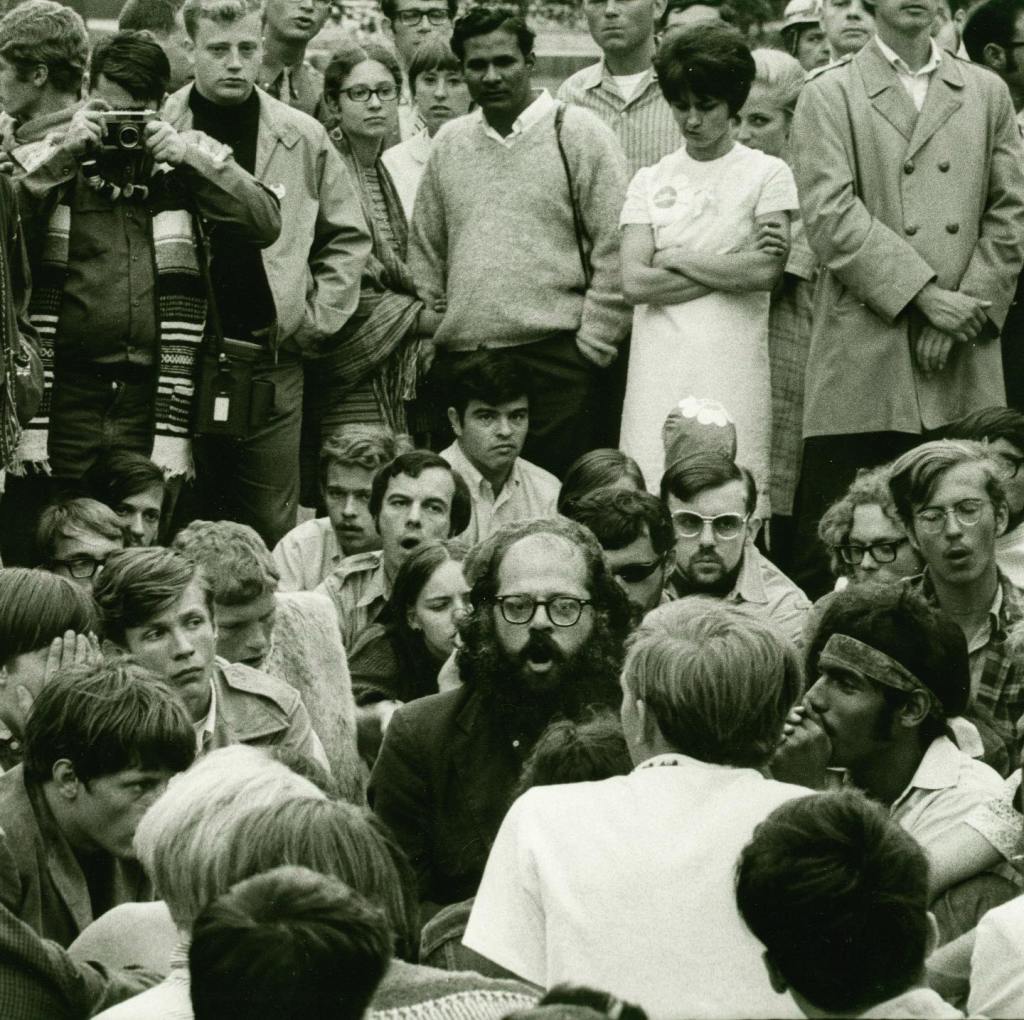 The DNC protests attracted a notable coterie of poets, writers, and musicians. For me, the most adorable were the French playwright Jean Genet (a favorite among the Panthers) and beat poet Allen Ginsberg. I highly recommend watching this short film about Jean Genet in Chicago for his radical outsider perspective. Genet and Ginsberg, along with William S. Burroughs and Terry Southern, were dispatched by Esquire Magazine to report on the convention. A “hard-hitting little press team,” Southern wrote, that “had one hell of a time actually getting admitted to the hall, despite proper credentials. Burroughs and I, of course, are veritable paragons of fashion and decorum—but Ginsberg and Genet, it must be admitted, are pretty weird-looking guys.”