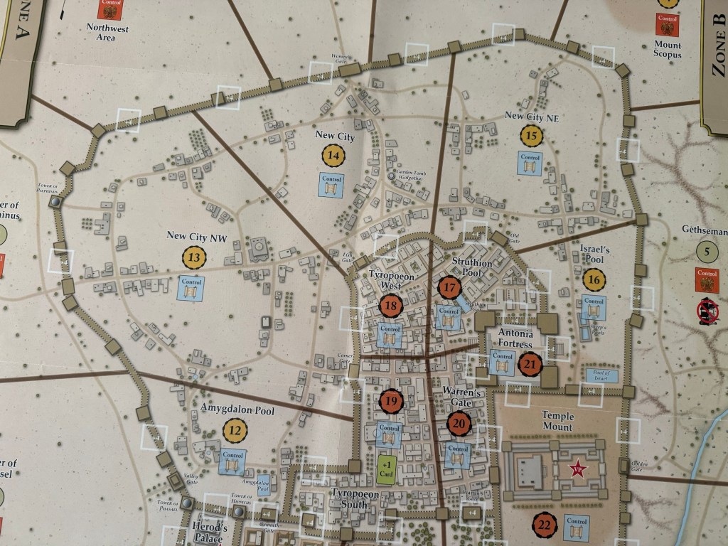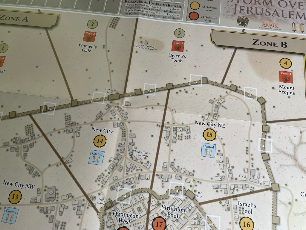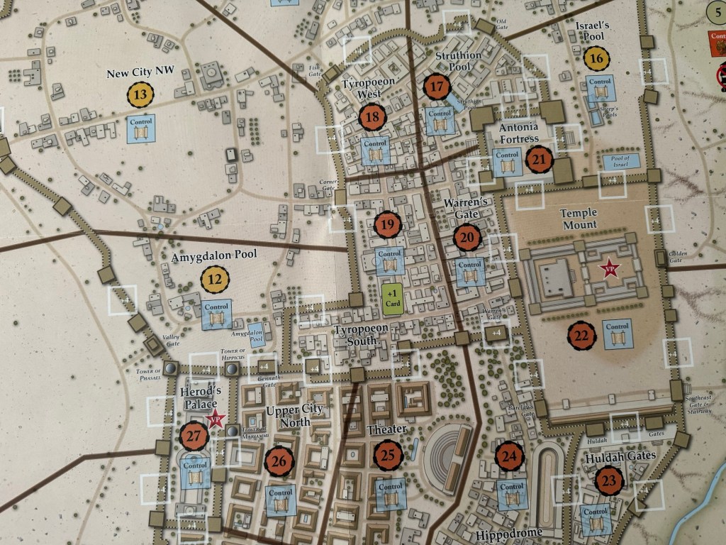 Definitely has made some aesthetic improvements in the way the city is presented in this game. I would love to get a copy of the Avalon Hill Siege of Jerusalem game to compare and contrast.