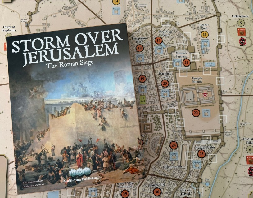 I also posted an interview with the designer Scott Blanton and you can read that at the following link: https://theplayersaid.com/2023/06/19/interview-with-scott-blanton-designer-of-storm-over-jerusalem-the-roman-siege-from-multi-man-publishing/