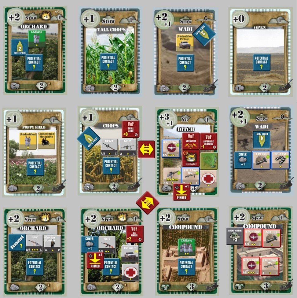 Afghanistan terrain is also varied. The dense Green Zone comprises orchards, ditches and head-high crops that cut the Line of Sight drastically. Desert terrain is barren, but with the odd hill or wadi to provide strategic points.