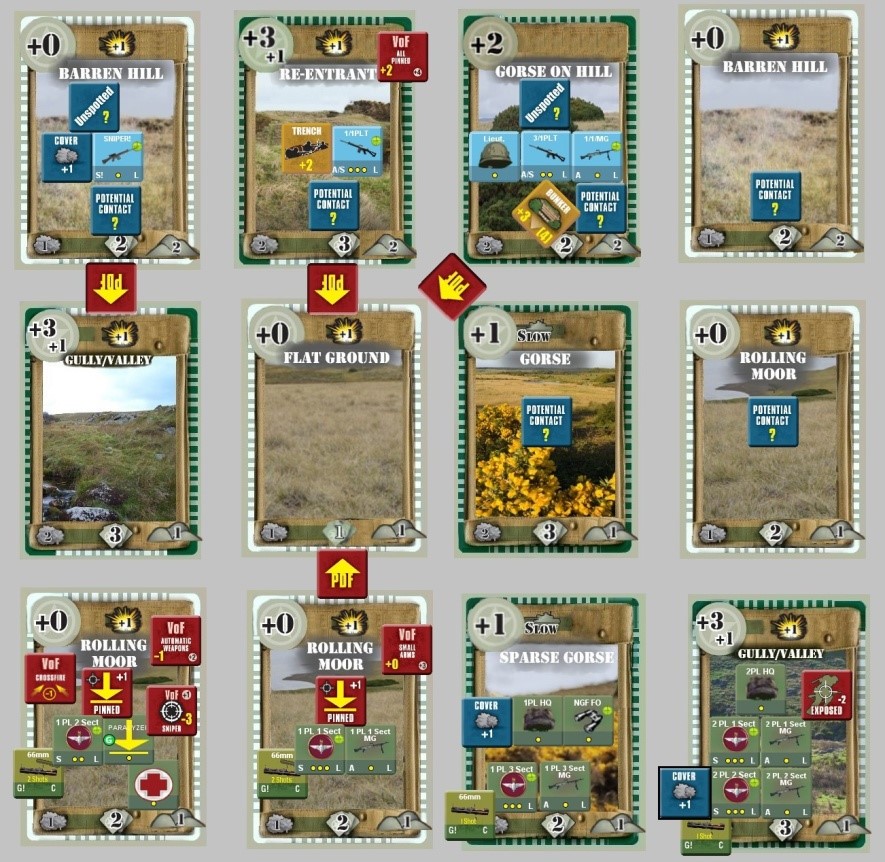 The two Falklands decks are quite distinct; Goose Green comprises a few gullies and gorse bushes, and a lot of flat open land! The peat soil helps to deaden artillery fire, but you will often find yourself terribly exposed. In comparison, Wireless Ridge is very craggy which, in conjunction with the nighttime conditions in which you assault, offers a lot more protection but to both you and the defenders.