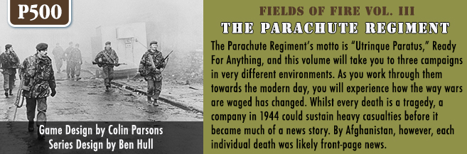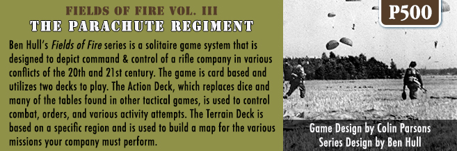 If you are interested in Fields of Fire Volume III: The Parachute Regiment, you can pre-order a copy for $87.00 on the P500 game page at the following link: https://www.gmtgames.com/p-1051-fields-of-fire-volume-iii-the-parachute-regiment.aspx