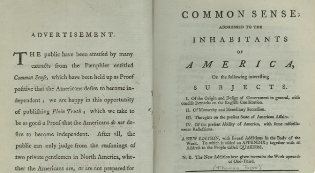 Common Sense advocated independence from Great Britain and was written by someone who had a stake in this fight and had the gift and ability to convey his feelings in writing. Writing in clear and persuasive prose, Paine collected various moral and political arguments to encourage common people in the Colonies to fight for egalitarian government. It was published anonymously on January 10, 1776 at the beginning of the American Revolution and became an immediate sensation. He also later wrote The American Crisis (1776–1783), which was less popular but still laid out clear arguments for what America has become. These two pamphlets are some of the most influential pamphlets written during the Colonial period and had a hand in changing of attitudes toward the ongoing American Revolution and helped to inspire the colonial era patriots to fight for independence.