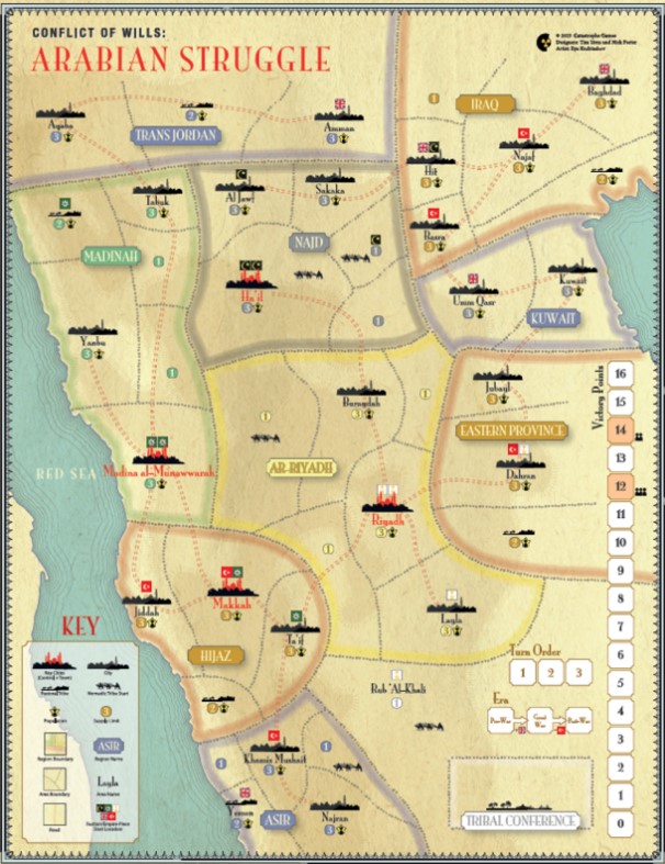 If you are interested in Conflict of Wills: Arabian Struggle, you can order a copy for $50.00 (if using the code just $42.50) from the Catastrophe Games website at the following link: https://catastrophegames.net/arabian-struggle/