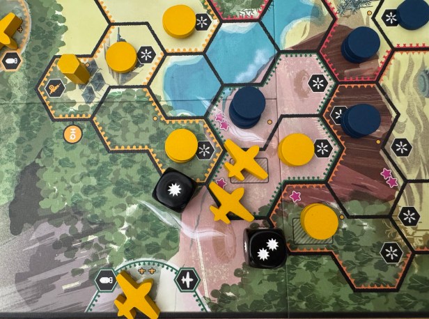 I very much enjoyed playing with the Aircraft on the Pacific side of the board as it added an extra layer of options to take over Zones and gain their rewards and their scores. The other interesting part of the Aircraft is that you can fight over control of the Air Zones by placing your Aircraft into an enemy controlled Air Zone. This leads to air conflict (or dogfighting) and can result in control being lost or gained.