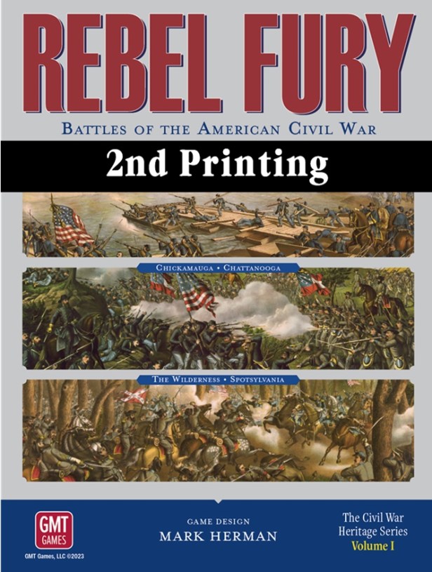 Several years ago, Mark Herman designed a very unique and simple American Civil War game called Gettysburg that appeared in C3i Magazine #32. That game became the basis for his new Civil War Heritage Series with the first volume being Rebel Fury that focused on five battles from the Chancellorsville and Chickamauga Campaigns. This is a low complexity, low counter density system that is very much focused on maneuver and positioning of forces on the American Civil War battlefields and is really fun to play. The game has done very well and been a hit so they are bringing it back for a 2nd Printing on the P500 and I recommend that you get in now!