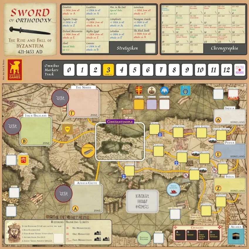 The game starts after Napoleon’s disastrous 1812 retreat from Moscow, covering the decisive years of 1813 and 1814. The abstract game map involves a strategic theatre portraying Europe from the Iberian Peninsula to the boundaries of Poland and Prussia. It also includes the secondary front of Italy, an area for depicting maritime warfare and the British/American War of 1812. This game by designer Frank Esparrago and developer Dick Sauer (with much appreciated input from Mark Herman) has been created to be played as both a diplomatic and strategic military conflict without losing the taste of the Napoleonic era’s great battles.