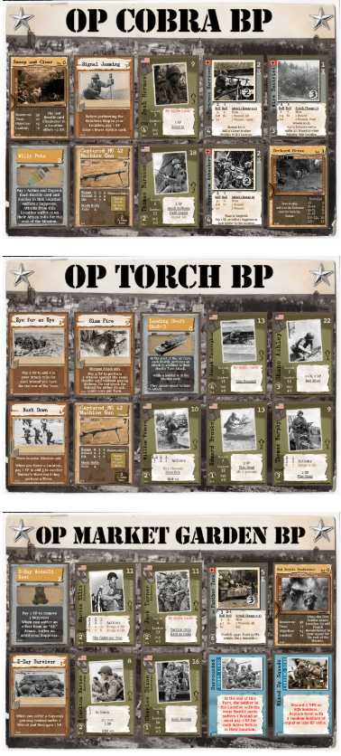 There are 3 different packs in the Kickstarter for the WWII Era including Operation Cobra BP, Operation Torch BP and Operation Market Garden BP.