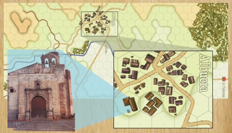 Frederic: The river (Rio Albuera) on the north side pretty much prevents any major maneuvering on that flank due to the risk of disorder caused by the river crossing. The rising terrain on the south side creates maneuvering hurdles for the French that need to climb the heights. Finally, the village of Albuera itself, while mostly made of ruined houses, did see some heavy close combat fighting and is quite difficult for the French player to take over.