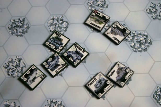 Matt: The armour value of a counter is the unmodified dice roll needed for a firing armour counter to penetrate that armour target. For example if a tank has an armour value of a 5 then when that tank is hit the opponent needs to roll a 5 on a D6, to penetrate (and potentially knock it out) that tank’s armour.