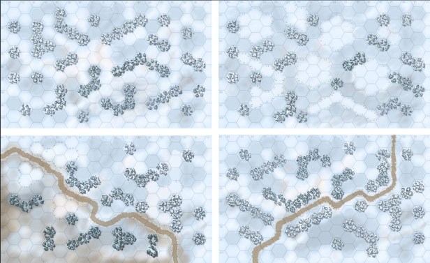 Matt: The game will come with 8 geomorphic maps that can be laid out in different combinations for the different scenarios. There will be 12 scenarios for 2-player and 12 for solitaire with again. In addition there are extra maps and scenarios unlocked as stretch goals.