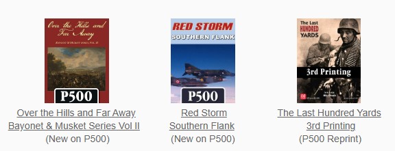 There were 2 new P500 additions offered this month including Over the Hills and Far Away: Bayonet & Muskets Series Volume II and Red Storm: Southern Flank. There also was 1 reprint offered in The Last Hundred Yards 3rd Printing.