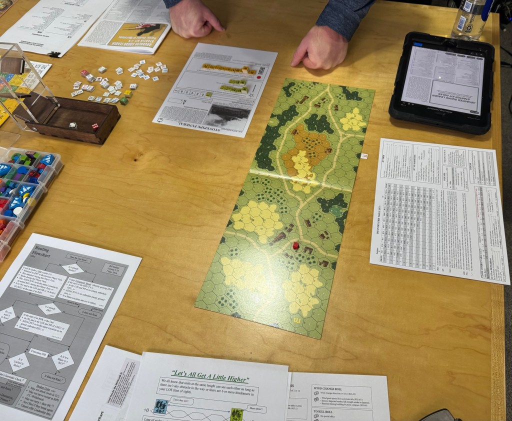 People find Advanced Squad Leader to be very complex and I think that this is a major barrier to entry for new or newer wargamers. For those that grew up on the system, they don’t find it that much of a problem because they have been playing it for decades. But for those that are new, it can be really daunting and frankly many start and put it away after not getting very far in their understanding. But, after having now played, I tend to see this as a raw deal for ASL as I didn’t think that the rules were all that bad. It made sense to me and while it took a few hours (literally we played 5 rounds in about 4 hours with a teaching overview and setup), I actually picked it up much more quickly than I thought I would. And that frankly gives me hope that I can play it again in the future. But, I bring this up because I feel that the reputation of the game is daunting and probably keeps more people back than the actual play experience. Does that make sense? I hope it does because I want people to know that it is not undoable!