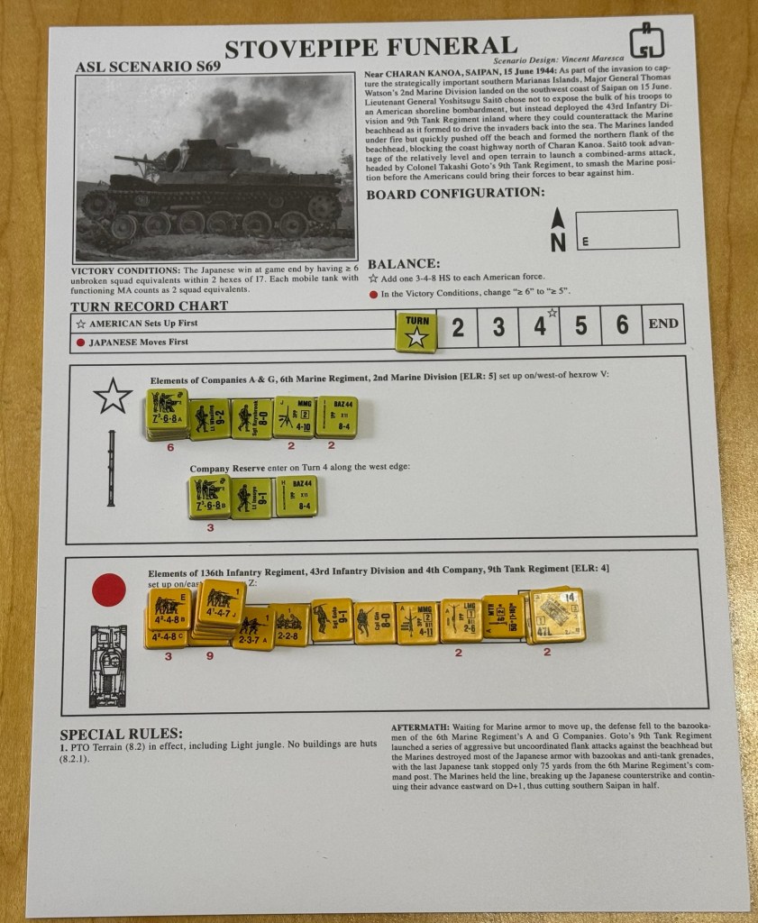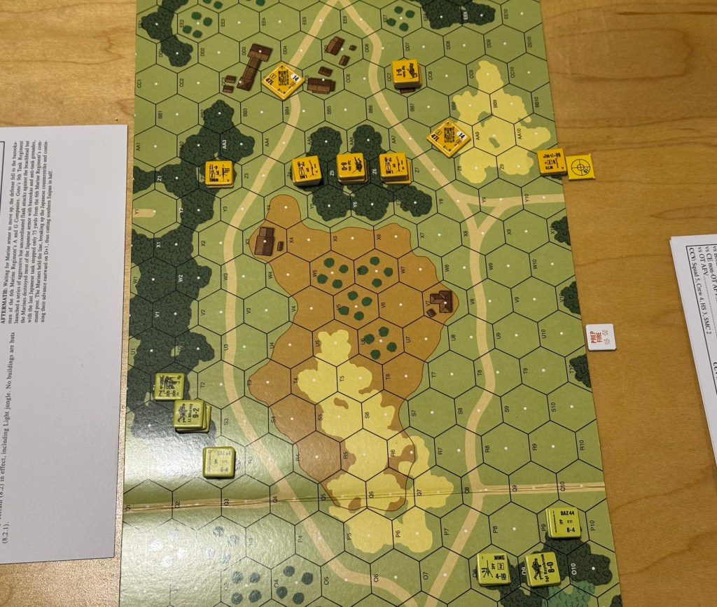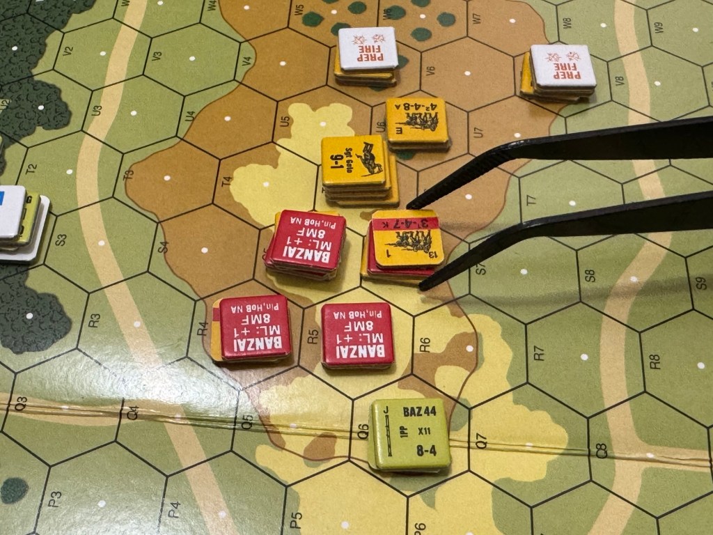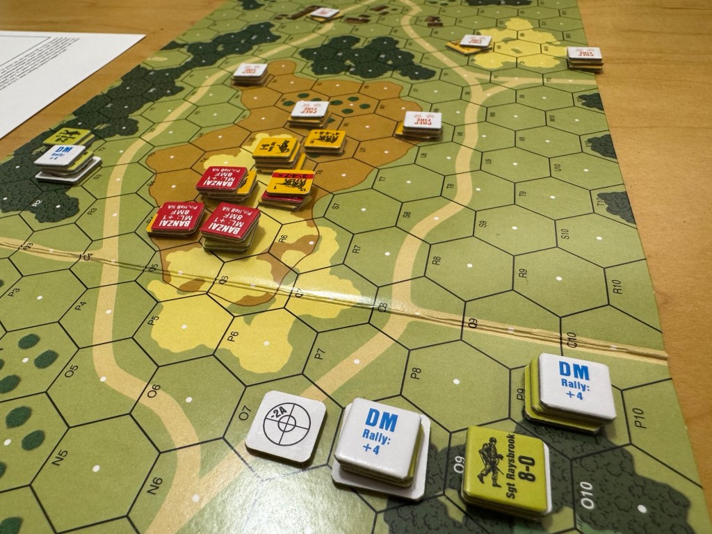 But I think that the systems used and the rules that prop them up are really quite realistic and provide you the player with a good understanding of the factors involved in these small tactical engagements and their pitfalls. I do really think that the system mimics the process and actions of soldiers in many ways. Does it do this perfectly? Probably not but I am unsure that I can’t definitively say at this time in my journey but I want to learn more and understand the answers to those questions. And hopefully I can play it again to get a better feel and understanding. I also think that people really enjoy the bits and pieces of chrome that are injected into the system. I bring this up as I experienced the chrome of banzai charges as we played ASLSK#4 The Pacific Theater of Operations.