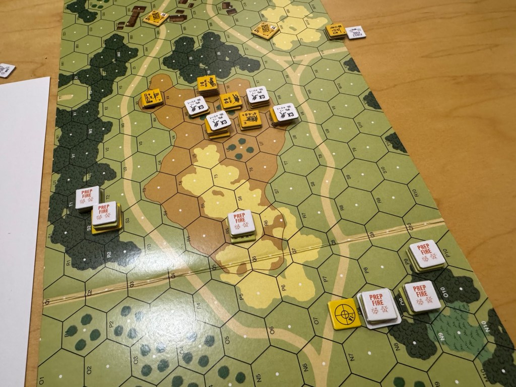 But the complexity is another thing. The game is very deep and has a process and a modifier for each and every aspect of the game. When you first move, you have to check for Opportunity Fire from your enemy’s counters which are in range and sight of your units, which is not uncommon in wargames at this scale, but there is a prescribed way to have this done. You move the counter and before moving to the next hex you look at your opponent with those worried and fearful eyes. No words are needed. Only a look. And then you do it again until upon looking at your opponent at that inopportune time (or at the opportune time for them), they grab their dice and start calculating their attack and begin to roll and at that time you know you are in trouble.