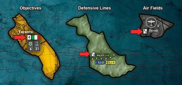 Seth and Chris: It allows terrain to play more of a factor – mountains and rivers in Italy, desert in North Africa, etc. This opened the door for new mechanics that give each scenario more unique flavor, such as the use of defensive lines in Italy and mobile supply hubs and supply chains in North Africa. We also were able to break up some key objectives and paths to victory points differently. For example, Tobruk is the crown jewel of the North Africa scenario and its full victory points cover several spaces on the board vs. just one – which allows for fighting on various fronts. It also recreates a key part of WWII history as Tobruk was hotly contested.