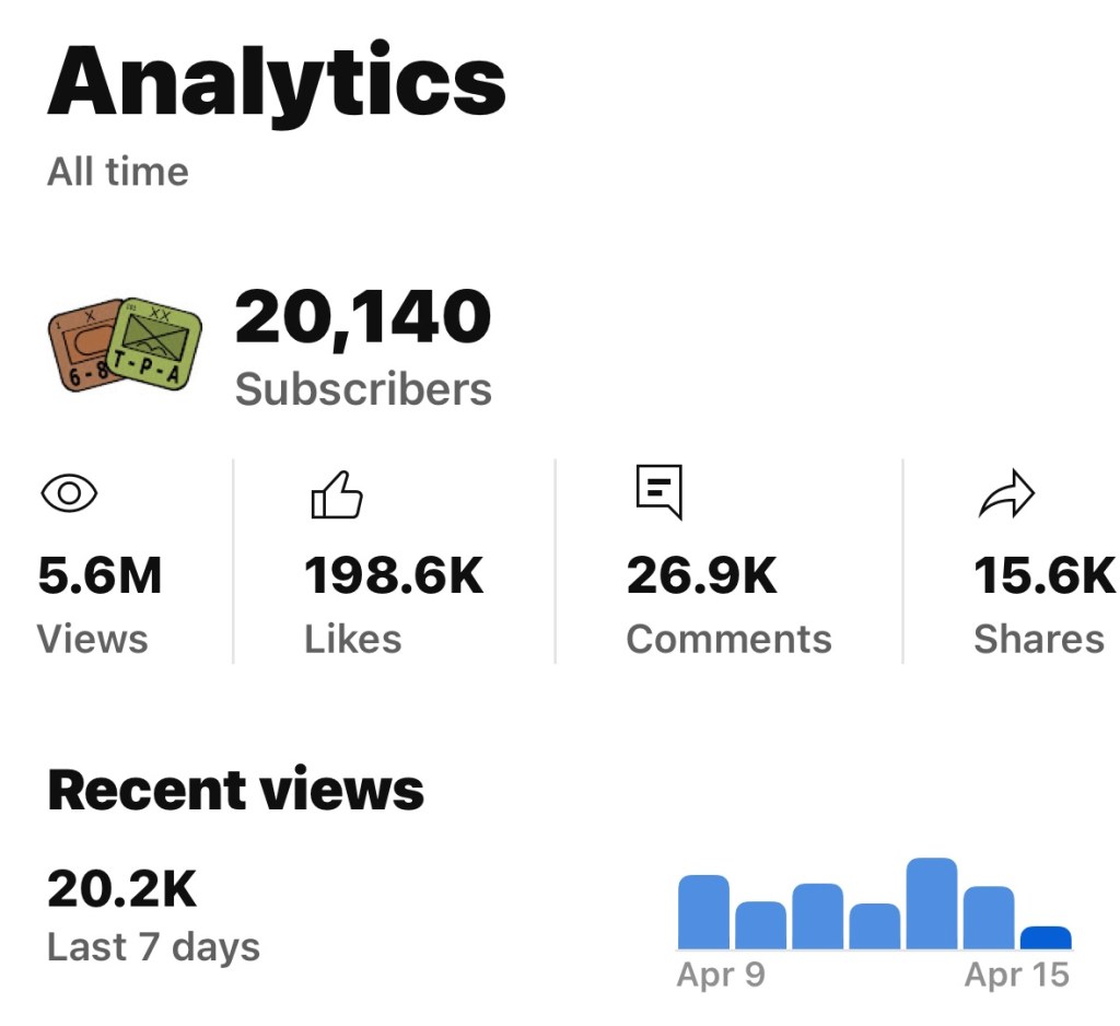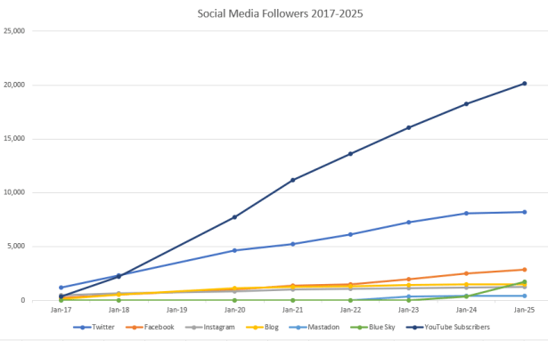 Our biggest area of growth though has been in our YouTube Channel as we now have over 20,000 subscribers. Compared to this time last year in April 2024, we gained 1,886 subs or a 10.1% increase. This growth was a bit less than in 2023 but still really solid. We are always amazed and humbled that so many of you want to hear what we have to say and spend so much time with us watching our videos.