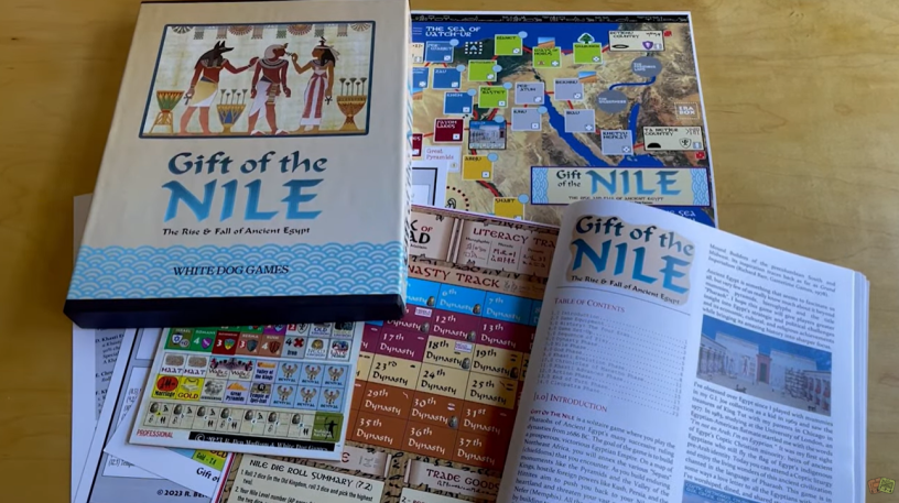 We published an interview with the designer R. Ben Madison and you can read that at the following link: https://theplayersaid.com/2024/03/11/interview-with-r-ben-madison-designer-of-gift-of-the-nile-the-rise-fall-of-ancient-egypt-from-white-dog-games/