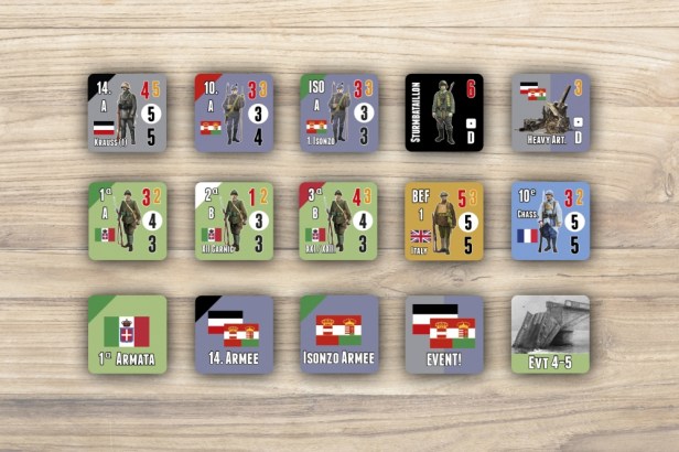 Hermann: Well ultimately, one of frustration and tough decisions! 😊 This design has an element of “push-your-luck” in it, as the Central Powers forces are more challenged the greater success they achieve, and this is what actually happened during the campaign. Therefore, the player will constantly be balancing the most efficient ways to advance and attack while also keeping an eye on the growing resistance being created and the threat of the Germans giving up on the campaign and heading off to the Western Front.