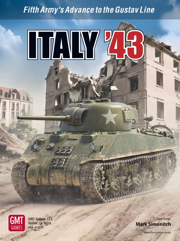 Next up we got a look at the final cover for Italy ’43 and I am very excited about this one! A few years ago, Mark focused on the Italian campaigns of WWII and started with his game called Salerno ’43, which covers the Allied invasion of mainland Italy in September 1943. Since that time, we got the next volume in the series called Italy ’43.
