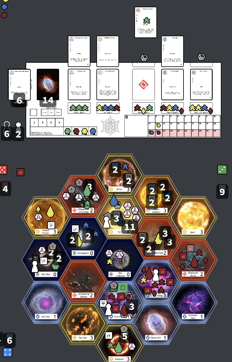 Adam: All the Sectors are included in each game, though because movement is pretty slow without Technology, the distance of a Sector from the “Core” (around Sol’s fixed location) can dramatically change how impactful a given sector is from game to game.