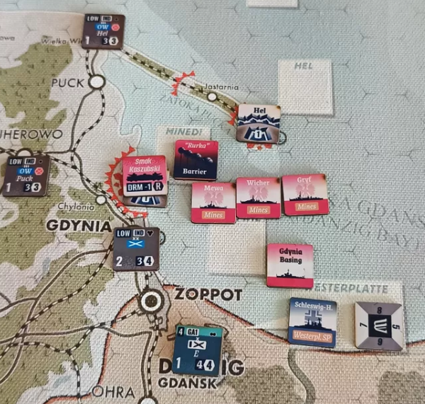 Gregorz: The game will include 18 scenarios. Five of which are learning scenarios, other five are campaign scenarios (simply with different start dates) and the rest are operational battle scenarios, focusing on the smaller picture. Average game time for battle scenarios is 4-8 hours, The full campaign takes around 100-120 hours to complete (of course it can end much earlier with a Sudden Death victory). The first learning scenario takes around 15-20 minutes to play with just 5 units on the map. The learning scenarios are designed in a way, that they use the main rules but in parts. The game will include additinal book – “Learning Rulebook” which will have the same composition as the main rulebook, but all unneeded paragraphs will be cut or highlighted not to be used. Besides, there is a very interestind procedure for anyone who do not know much about the campaign. The first learning scenario – the Battle of Kock – is actually the last battle of the campaign. The third scenario takes place in Gdańsk. The fourth with some more rules added, south of Gdańsk, on the Pomerania Corridor and the fifth with some more rules added (but still not the complete set), just east of the Corridor. The scenario “6” is a thrown in half-campaign scenario – HG Nord. The interesting fact is, that this scenario uses the full set of rules and combines scenarios 3, 4 and 5 into one large scenario. The player who lears the game knows already the OdB of every part of this front, terrain and will be able to discover, how those battles influenced each other. I put very strong pressure on lowering the learning curve as I’m very well aware, that releasing a very innovative, complex game about topic that is not very popular could be a diseaster. But with this learning process included in the game, entry level is much lowered.