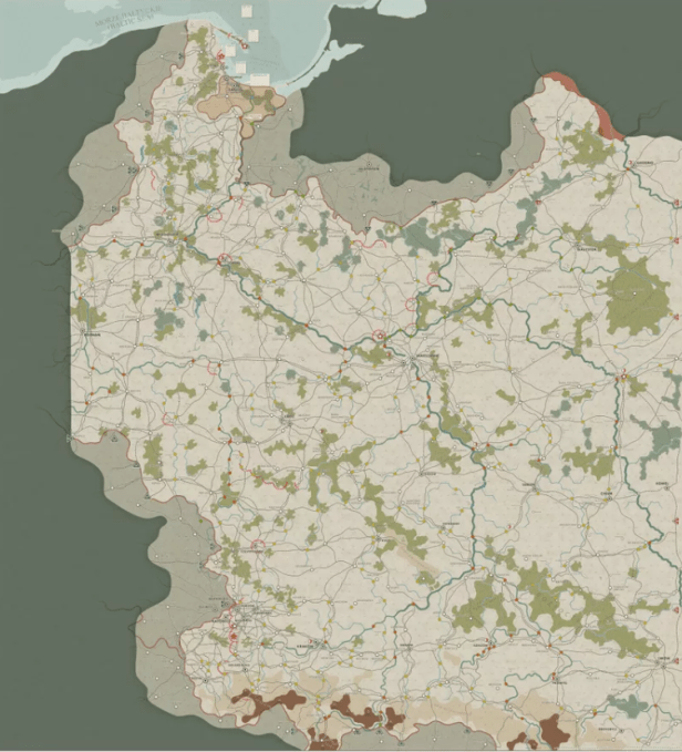 Gregorz: The map includes around 70% of 1939 Poland’s territory. The leftover is the eastern area, not used in the main event as well as part of Poznań area which has not been used by the German side for the attack of field armies. The Soviet attack is included in the game but in other ways. Instead of using units, the Soviet fronts work as a mobile map boundary. In any case, the area of the map allows players to fight the whole historical campaign.