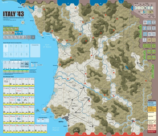 If you are interested in the Mounted Map and 2″ Box for Italy ’43, you can pre-order a copy for $22.00 from the GMT Games website at the following link: https://www.gmtgames.com/p-1168-italy-43-mounted-map-2-box.aspx