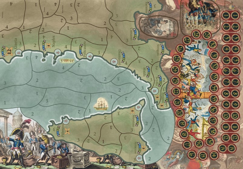 By the close of 1805 the Third Coalition, which had been orchestrated by William Pitt, was in tatters following their catastrophic defeat at Austerlitz. However, in late 1805 a tiny Anglo-Russian army, sent by Pitt and paid for by the British government, disembarks in the Bay of Naples to support Ferdinand IV, King of the Two Sicilies. This army, commanded by the Russian General Lacy supported by the British commanded by General Craig, approximately 15,000 men strong, is now the only Coalition force on mainland Europe. Will they be able to defend Naples, or will they evacuate leaving the wretched Neapolitan army to its fate? Will Marshal Massena secure the Two Sicilies for his Emperor, or will the Coalition be able to save Ferdinand’s last stronghold, the island of Sicily itself? The second game in the Limits of Glory Series explores the British campaign in Naples in 1806.
