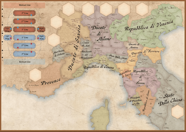 To celebrate the 500th anniversary of the Battle of Pavia (February 24, 1525), this game features the entire 6th Italian War, beginning in 1521 and leading up to Pavia,. The strategic map will include part of southern France, invaded by the Imperials led by defector Charles de Bourbon, former constable of France, and notably the strategic city of Marseille, which has been under siege for 40 days.
