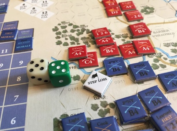 One of the other things that I really liked about the system and our experience with Brandywine was some of the special units that were depicted. For example, the Hessian units included on the British side had amusettes which gave them some extra firepower and then the Patriots have several rifle units that are better that can really target officers and do some damage. These inclusions are really great as they build the historical narrative and teach the players about the time period.
