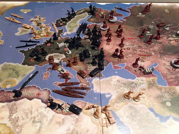 I love the Revised Edition of the game as they added several new pieces including Artillery (which gives a +1 to the attack value of infantry when present) and the Destroyers. The map has also been rearranged (I love the addition of West Russia) which has created the need for new strategies for the Axis powers to launch Operation Barbarossa to invade Russia. One of the reasons that I love this game is that there are always interesting choices about what to do with your units. Should I direct attack? Should I hold reserve units to perform a counterattack? How can I protect my more expensive armor units and use them effectively? How can I bring enough air power to bear on his flotilla off the coast of England to hold off invasion another few rounds? I also love the ability of each nation to gamble with their IPC’s (Industrial Production Credits) and invest into the roll of 6 sided dice to develop game changing technologies like long range aircraft or heavy bombers. Some will say this is a waste of time and resources, but if you succeed, they open up new and interesting ways to defeat your opponents.