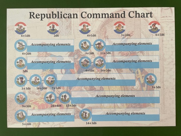 Andrew: Both players have their own Command Chart and during set up the two position and Glory markers for each commander are placed on the Command Charts. This tells the players the Glory Rating of each commander and their seniority over other commanders.