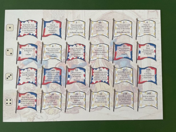If neither player reaches 40 VP’s, one player must have more victory points than the other player to win the game when event number 14 is rolled with four dice. This signifies that the Committee of Public Safety in Paris has run out of patience and ordered the infernal columns to finally destroy the Vendée uprising and end the game.