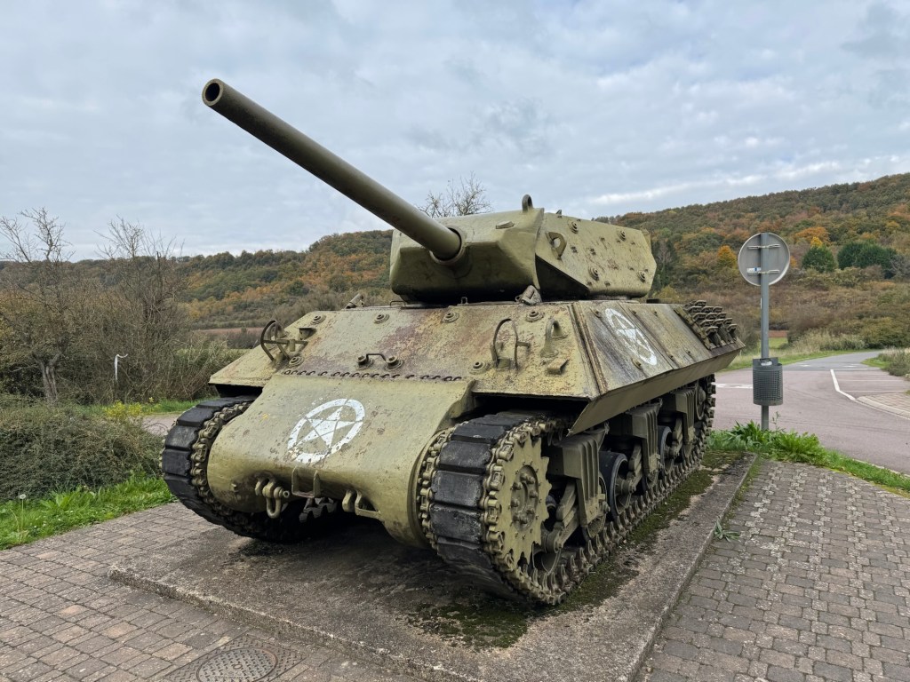 Obviously this tank had nothing to really do with the Maginot Line but was there representing the American action during the Battle of the Bulge in 1944.