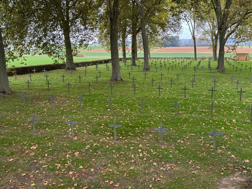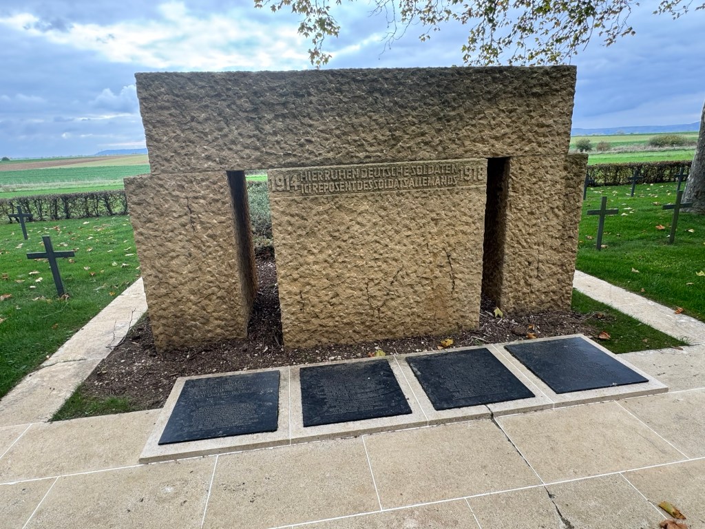 While on the way to Verdun we came across an interesting site pretty much in the middle of nowhere in a German soldier graveyard from WWI.