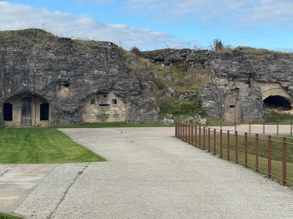 We then finished up with a walking tour of the Fleury-devant-Douaumont Fort and it was very massive! Made of concrete, and mostly buried into the side of the hills there, this fort was never taken and shows signs of continual and heavy bombardment with shell holes, destroyed walls and structures and lots of left over trenches in the area.