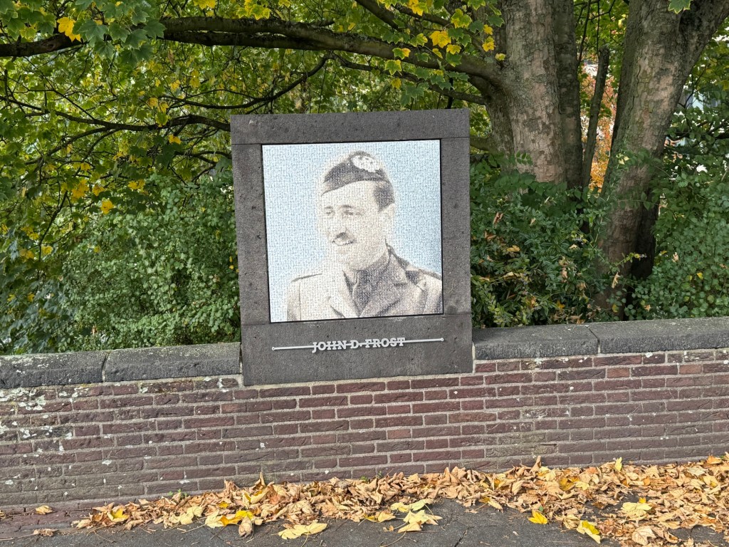 There is also a nice little monument to John Frost on the east side of the bridge that is a photo mosaic made up of a few hundred smaller pictures of the soldiers who fought there. John Frost was played by Anthony Hopkins in A Bridge Too Far and is famous for saying “Bring up the PIAT!”