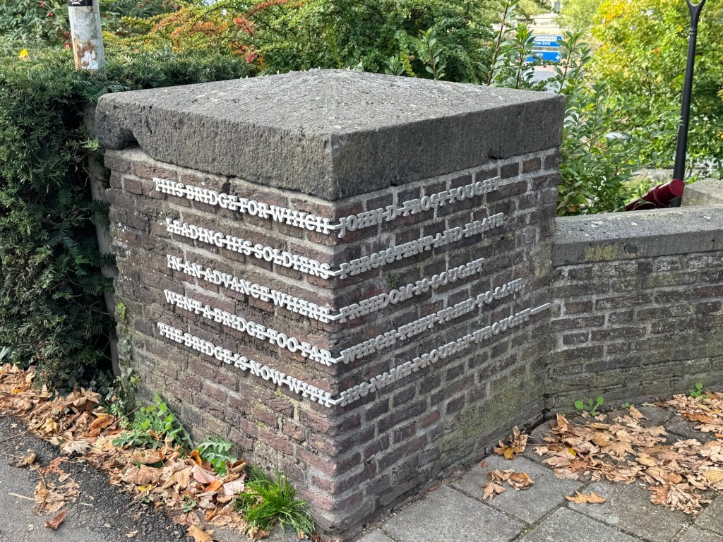 Goedemorgen from Eindhoven Bridge! Eindhoven was the smallest of the 3 bridges and really is just a small 2-lane draw bridge over a canal. Not much at the 101st Airborne Memorial that was nearby as the screaming Eagle insignia has been removed but it says “For those who here fell”.