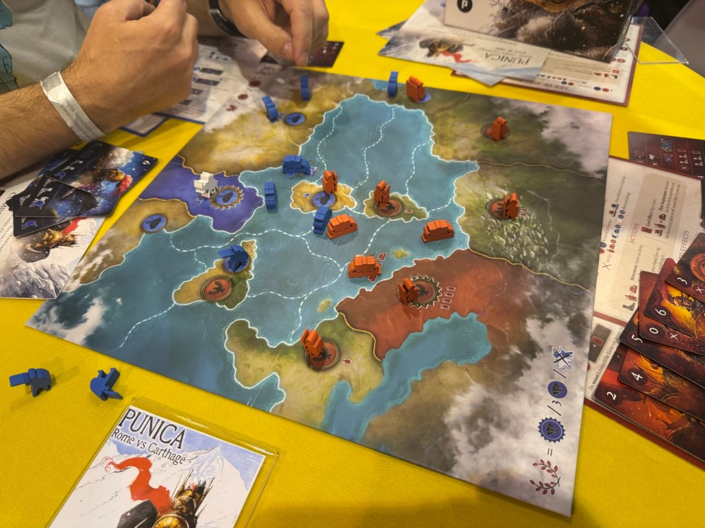 Next we went back to PHALANX’s booth and got a play in of the new Punica: Rome vs. Carthage.