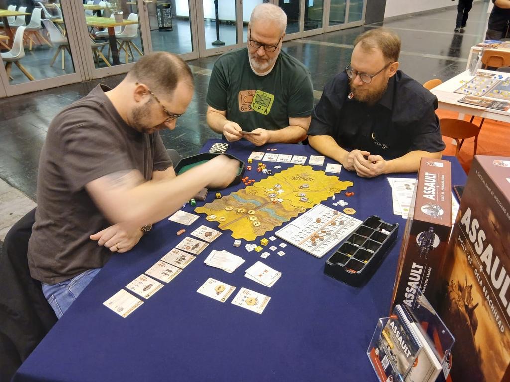 Today, we arrived at the convention hall and had an appointment to play a scenario of Assault Sicily Primosole Bridge with designers Wolfgang Klein and Erich Rankl from Assault Games.