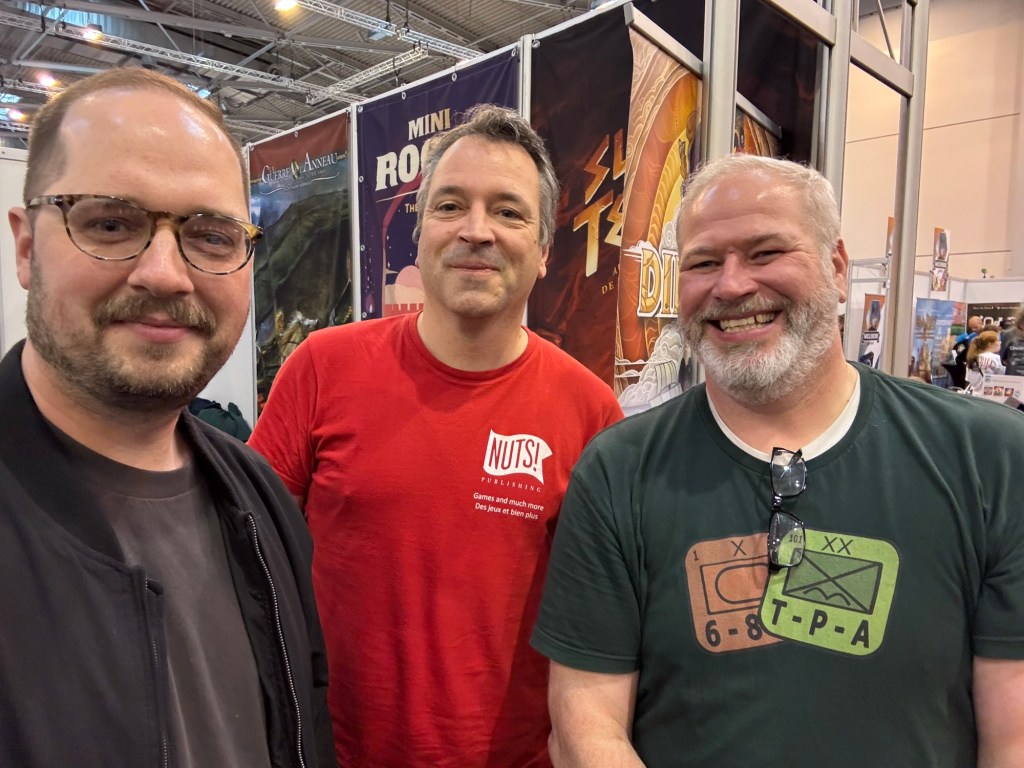 We then made our way over to the Nuts! Publishing booth to meet with Florent Coupeau to discuss their new and upcoming games. Nuts! really has some great looking wargames and we have very much enjoyed their offerings over the past few years.