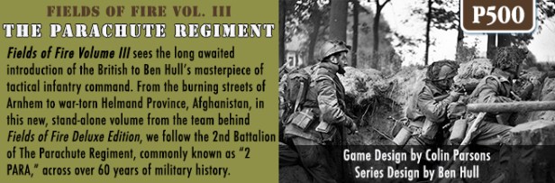 Fields of Fire III: The Parachute Regiment is entering the final stage of production. A second round of playtesting for the Arnhem campaign is now complete. The latter stages of this campaign feature Fields of Fire’s most complex layer, Urban Combat. We’ve been focused on ensuring the campaign book, and the Urban Combat rules are crystal clear so you, the player, are concentrating solely on the situation and not the rules. Working out the best way to defend your pocket of the city with a handful of men, no radios, and an umbrella is where the fun lies after all.