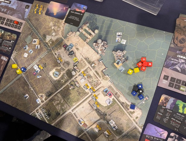 Christian: One of our goals was to create a realistic environment, which we achieved by using drone footage for the game boards. The images on the Command Cards also aim to convey the feeling of a real mission. It was important to me that the game should feel different every time, even if you play the same mission again. I also wanted players to have more freedom in setting up the game compared to other games where the locations of the units are fixed at the beginning.
