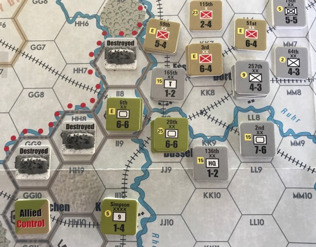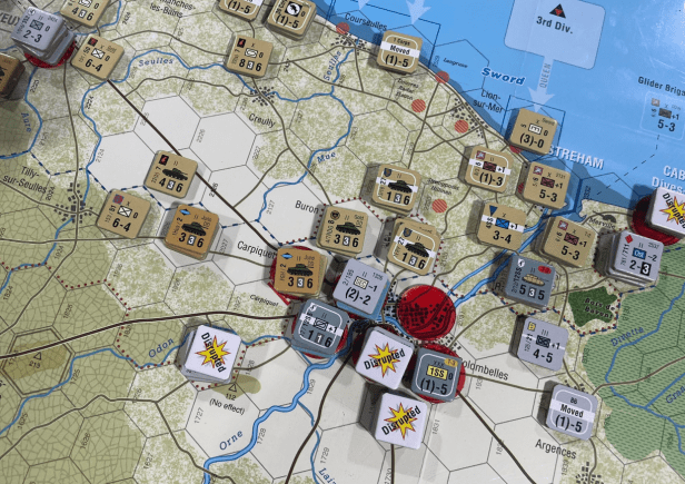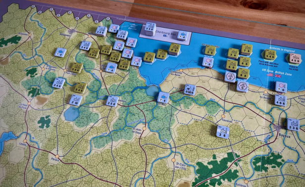 But that’s what this game is about. Land forces, establish a beach head, land the mulberries and try to breakout. Liberate Paris and race to the German border. When the storms hit and wreck your mulberries though it can wreak havoc with your supply and command. The mulberries and ports you control determine how many steps of units you can have and use in France, so a wily counter attack from the Wehrmacht can really screw up the Allies. That’s something I enjoyed. This wasn’t a linear simulation. It was a game. There was space for both players to conduct operations and make some meaningful choices and not just run, run, delay by the Germans, although they will have to do that at some point.