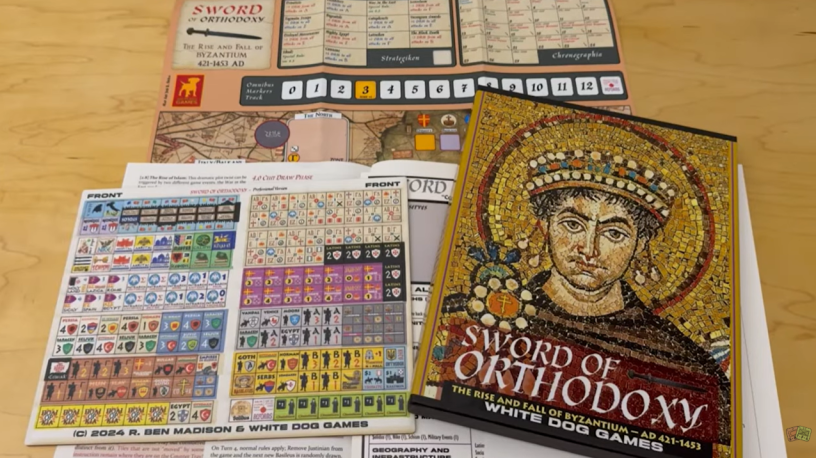 Sword of Orthodoxy is a strategic solitaire game of the rise and fall of the Byzantine Empire, simulating its saga from 421 AD until the end of the 15th century – an epic thousand year tale of heroism, betrayal, intrigue, and spectacular cultural achievements.