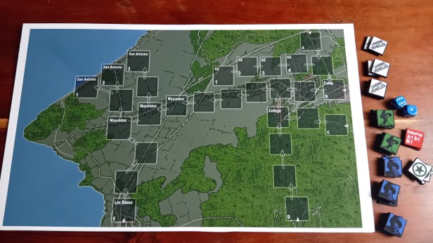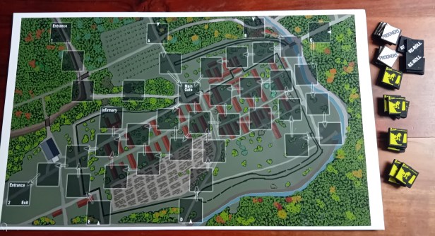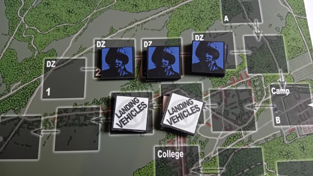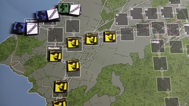 The main element of the design is that you command the paratroopers and guerrillas on this daring rescue mission. With most wargames, the mission is often defeat the enemy or hold a point, etc., but with this design the rescuing of the prisoners is your objective.