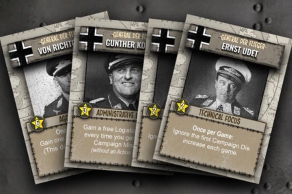 Martin: I absolutaly wanted to include some sort of customization or army building mechanic in the game to allow players to build their own Fliegerkorps using a tight 25 Victory Point (VP) budget.