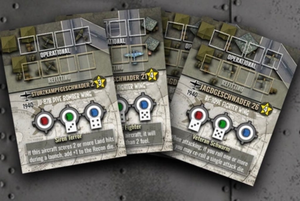 Recon: Use Recon-capable aircraft to gain Recon points, which can be spent to re-roll dice, ignore Saturation, gain an extra action, or adjust missions and events.
