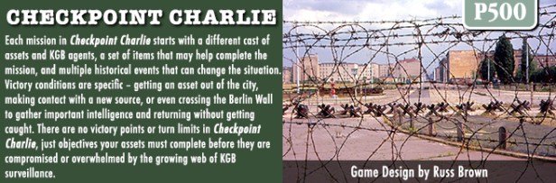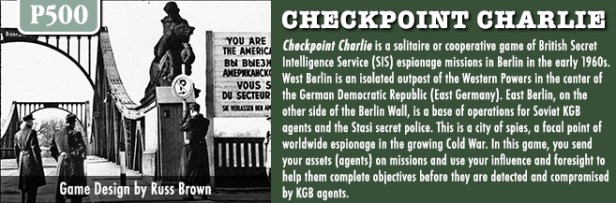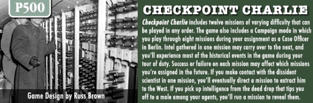 I love a different style and focus of wargame. A game that takes a look at an important but somewhat obscure or rarely addressed topic such as espionage or intelligence. And this past month, GMT Games announced such a game in Checkpoint Charlie, which is a solo or cooperative game focused on SIS espionage missions in Berlin in the 1960’s designed by Russell Brown. I have reached out to Russell and he was more than willing to provide some great insight into his design.